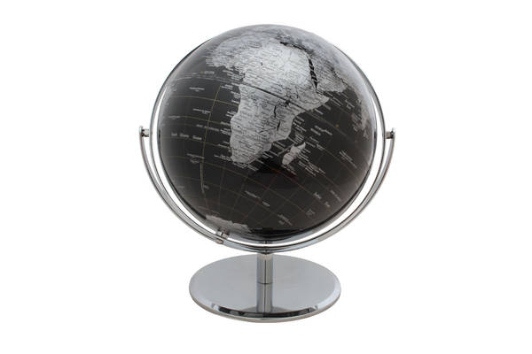 Item Description: 10" 2 tone duo axis black globe with silver base